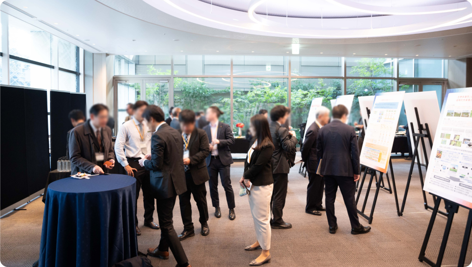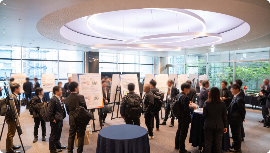 課題/施策説明講演とパネルディスカッションの合間には、プログラムディレクターや各課題/施策関係者と参加者が対面でコミュニケーションをとる場も設けられました。軽食を片手に、より密な議論や人的ネットワークの構築が行われ、『「未来社会」を知る。繋がる。体現する。』というテーマの実現が見られました。